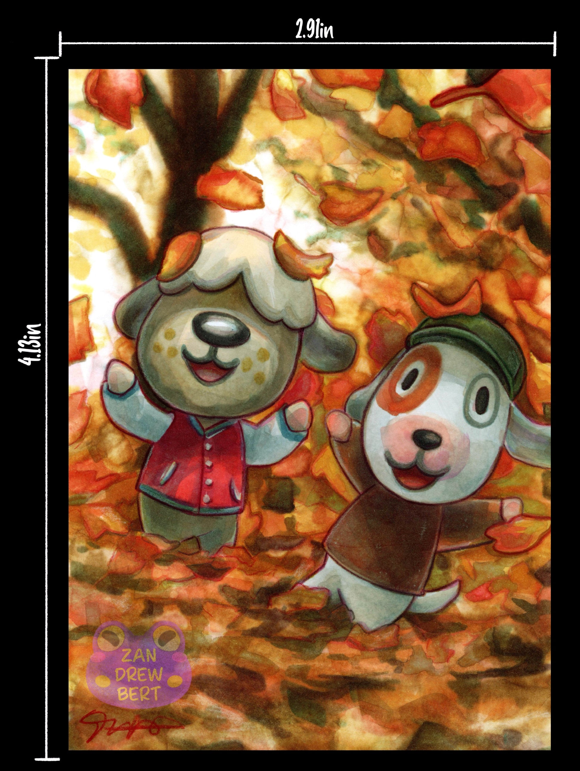 Drawn on 65lb Cover bright white cardstock paper. Piece is handcut about 74mm x 105mm (2.91” x 4.13”). Art by Zandrewbert.